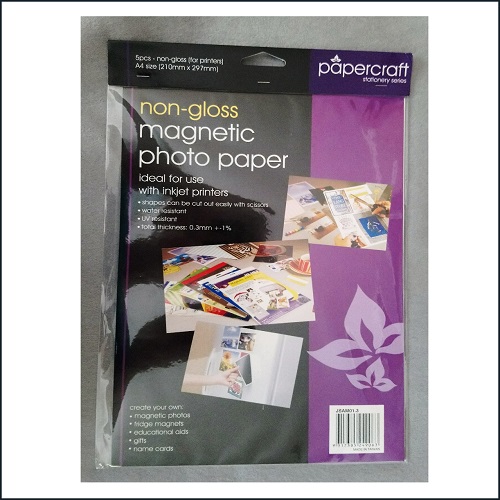 Magnetic photo paper for use with inkjet printers.